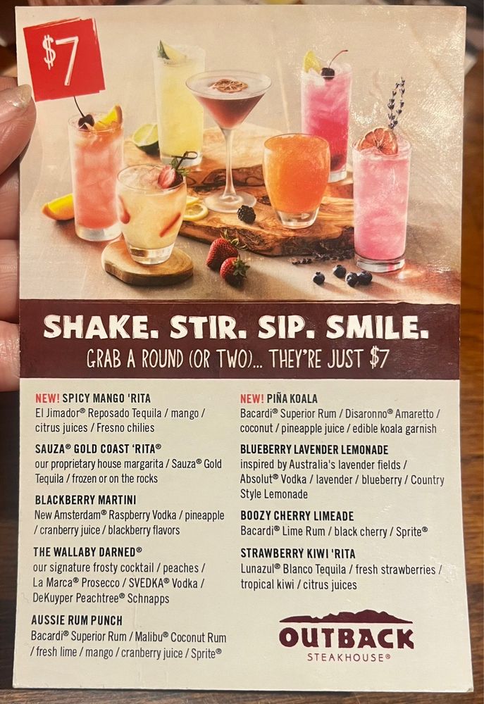 Start your culinary journey with mouthwatering appetizers like the Bloomin' Fried Shrimp or Kookaburra Wings, setting the stage for a memorable meal. The true stars of the menu, however, are the signature steaks. Indulge in the Classic Prime Rib, slow-roasted to perfection, or savor the rich flavors of the Bone-In Ribeye. Each steak is complemented by freshly made sides, ensuring a fulfilling dining experience.